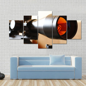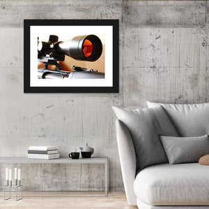 This photorealistic canvas art features a close-up of a sniper rifle scope, showcasing a serious and focused aesthetic. The artwork is beautifully presented with a matte finish and an eye-catching orange lens tint, making it a striking addition to any modern decor.
