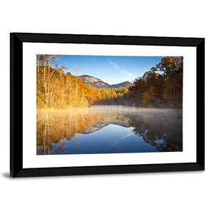 Experience the serene beauty of South Carolina with this landscape canvas art featuring a tranquil lake and majestic mountains adorned in autumn foliage. The crisp morning vibe is enhanced by sunlit trees, wispy clouds, and calm water, making it a perfect addition to your home decor.