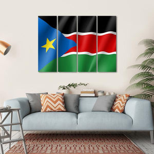 Celebrate the spirit of South Sudan with this striking flag canvas art. The patriotic design features a vibrant palette of blue, yellow, black, red, green, and white, making it a strong focal point for any wall.