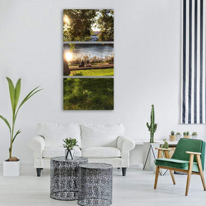 All of our multi panel artwork comes gallery wrapped(canvas print). The image is stretched around the sides and stapled to the back of the wooden frame. All the pieces of artwork will be ready to hang.