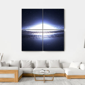 Experience the vastness of the cosmos with our Spiral Galaxy in Deep Space Canvas Wall Art. Featuring a stunning depiction of a spiral galaxy against a dark space background, the glowing core and scattered stars evoke a serene and awe-inspiring atmosphere. Perfect for adding a touch of modern abstraction to any room.