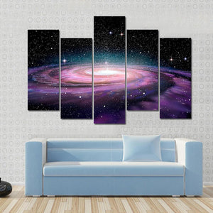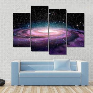 This captivating canvas art features a spiral galaxy surrounded by countless stars and swirling clouds of purple and pink gas. Its cosmic vibe adds a mysterious touch to any space, making it an ideal decor for modern interiors.