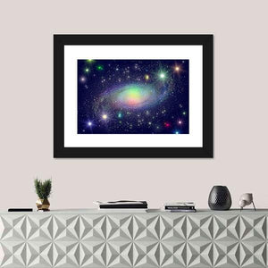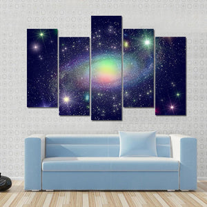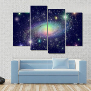 This vibrant canvas art depicts a stunning spiral galaxy surrounded by colorful stars and a mesmerizing nebula. Its cosmic and wondrous atmosphere makes it an ideal addition to modern decor, brightening any room with a touch of the universe.