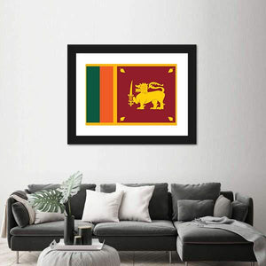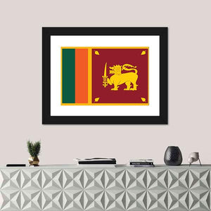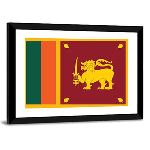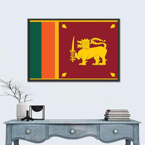 This canvas art showcases the national flag of Sri Lanka, featuring a bold design with a lion holding a sword and four bo leaves. The vibrant colors of maroon, orange, yellow, and green evoke a strong sense of patriotism, making it a striking addition to any wall decor.