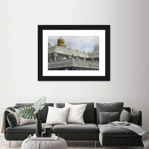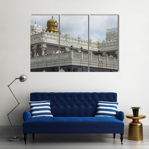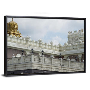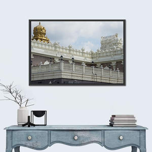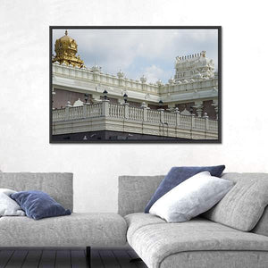 This canvas art captures the grandeur of the Sri Venkateswara Temple, showcasing its beautiful golden dome and ornate architectural details. The serene atmosphere is enhanced by a cloudy sky, making it a stunning addition to any space.