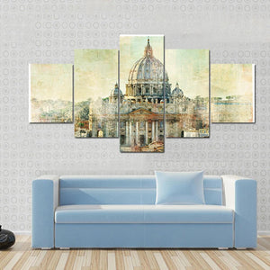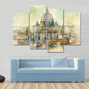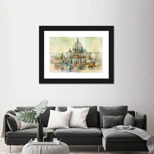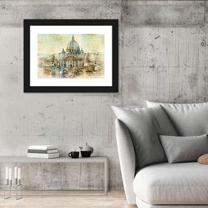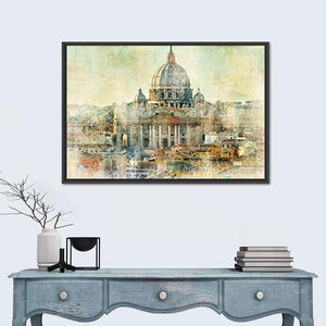 This artwork features St. Peter's Basilica in a captivating landscape view, showcasing the historic architecture of Rome. With its painterly brushstrokes and textured appearance, it evokes a warm, artistic vibe perfect for any wall decor.