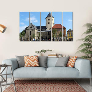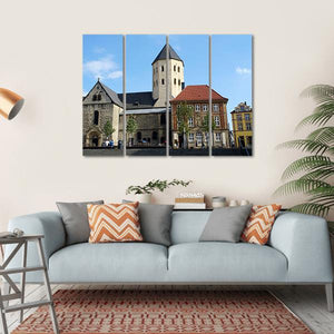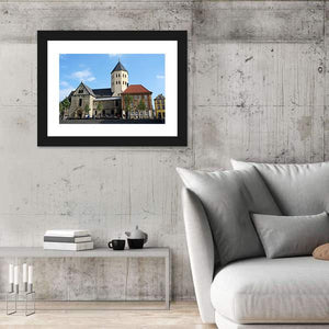 Experience the serene beauty of St Ulrich Church, a striking stone structure set against a sunny sky. This realistic depiction captures the church's tall tower and the vibrant plaza bustling with life, making it a thoughtful piece for anyone who appreciates historical architecture.