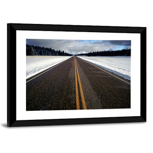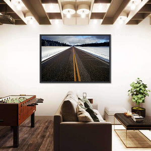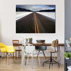 Straight Strip Of Road In Winter Canvas Wall Art This captivating canvas print captures a serene winter landscape—a solitary road stretching through snow-laden trees, evoking contemplation and tranquility. The composition's minimalist elegance makes it a versatile addition to any interior, from modern living spaces to traditional galleries. The high-quality canvas rendering ensures vibrant color depth and lasting durability, while the striking imagery commands attention without overwhelming your décor. Perfect for those seeking meaningful wall art that balances aesthetic sophistication with emotional resonance, this piece transforms blank walls into focal points of visual interest and atmospheric warmth.