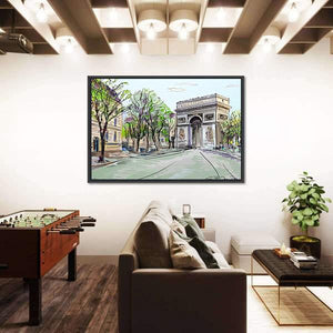 Capture the essence of Paris with this vibrant canvas art featuring the Arc de Triomphe and lively street scenes. Its impressionistic style and loose brushstrokes convey an energetic urban atmosphere, perfect for enhancing any modern décor.