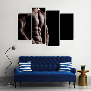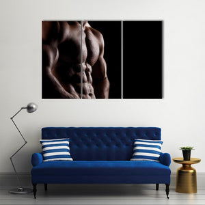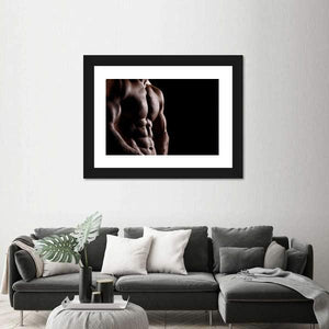 This canvas art features a close-up of a muscular male torso, showcasing defined abs and glistening sweat. With its intense, powerful mood and dramatic lighting, it adds a striking presence to any space.