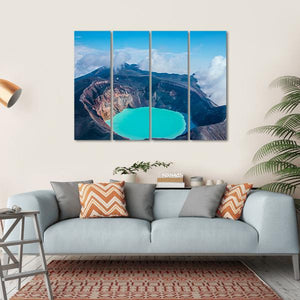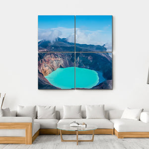 This canvas wall art beautifully captures the stunning turquoise waters of a crater lake surrounded by steep, colorful walls. With a dramatic and awe-inspiring scene of nature, it's perfect for anyone looking to bring a vibrant piece of Russia's landscapes into their home.