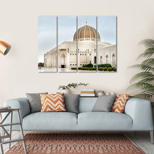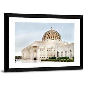 This canvas captures the grandeur of the Sultan Qaboos Mosque, showcasing its ornate dome and serene architectural beauty. The artwork features a striking palette of white, gold, and green, creating an imposing presence ideal for any room.