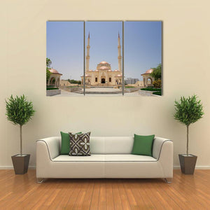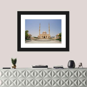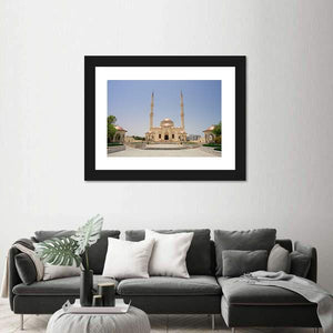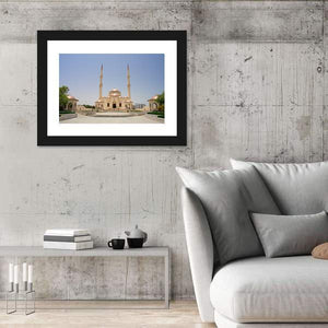 This canvas art captures the serene beauty of the Sultan Taymoor Grand Mosque, featuring its grand dome and ornate minarets against a clear blue sky. Ideal for adding a peaceful touch to your space.
