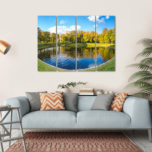 This beautiful canvas art features a serene lake surrounded by lush trees and vibrant reflections. The peaceful atmosphere, captured in soothing hues of blue, green, and warm autumn tones, brings a touch of nature into your space.