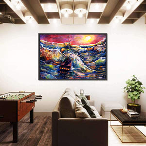 Sunset In Ocean Illustration Canvas Wall Art captures the breathtaking transition of day to night with expert precision. This compelling piece serves as both a focal point and conversation starter in any space. The vivid hues and masterful composition evoke tranquility while simultaneously energizing your interior design scheme. An investment-quality decorative element that transforms ordinary walls into sophisticated showcases of artistic appreciation.