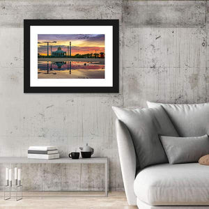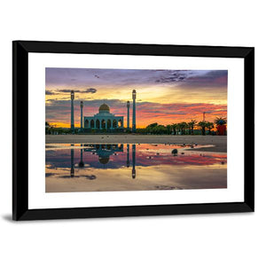 This canvas artwork features the Central Songkhla Mosque set against a serene sunset. With its majestic golden dome and tall minarets reflected in the water, it brings a peaceful atmosphere to any space.