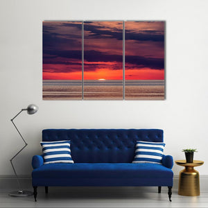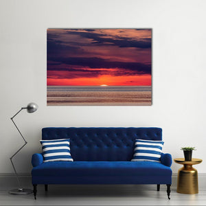 Sunset Over Ocean with Horizon Cloud Band Canvas Wall Art