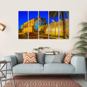 Capture the serene beauty of Alcudia Town with this stunning canvas wall art. Featuring a historic cityscape bathed in golden sunset hues, this piece showcases intricate gothic architecture and charming street scenes that evoke a calm, nighttime ambiance.