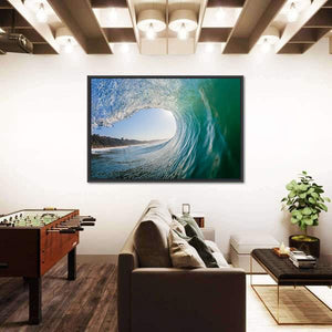 Experience the dynamic beauty of a hollow crashing ocean wave with this captivating canvas wall art. The refreshing palette of blue, green, and white captures the sunlight shining through the wave, creating a natural ambiance. Perfect for enhancing any room with a coastal vibe.