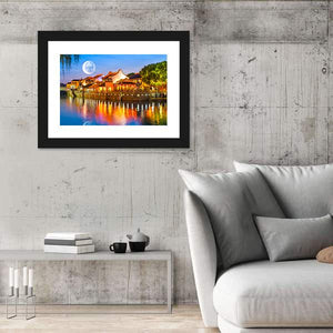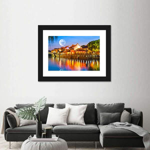 Experience the tranquility of Suzhou with this canvas art featuring vibrant waterfront buildings illuminated under a moonlit sky. The striking blues and warm oranges make it a perfect addition to any room where you seek romance and calm.