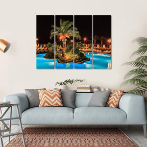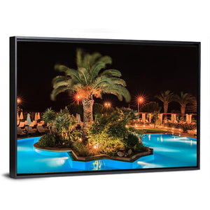 Experience the serene beauty of a tropical resort with this stunning canvas art. Featuring a vibrant swimming pool and illuminated island, it invites a sense of luxury and calm to your space.