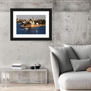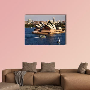 This vibrant canvas art captures the iconic Sydney Opera House amidst a scenic city skyline. The realistic depiction invites warmth and tranquility, making it a beautiful addition to any space.