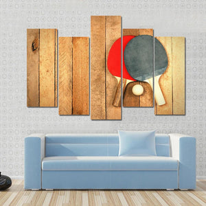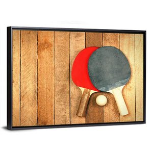 This canvas art features an overhead view of table tennis paddles and a ball set against a rustic wooden background. The sporty and playful vibe makes it a great addition to game rooms or casual spaces.