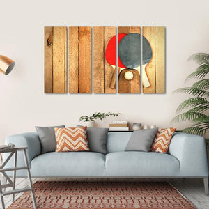 Celebrate the spirit of play with this canvas art featuring ping pong paddles and a ball set against a rustic wooden background. The warm palette of browns and reds creates a cozy vibe, making it an appealing choice for sports enthusiasts and modern room decor.