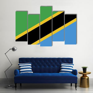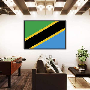 This canvas presents the Tanzanian flag in an abstract, geometric layout. Diagonal blocks of green, black, yellow and blue give the piece a bold, symbolic feel that works well with modern and minimalist home decor.