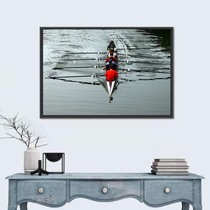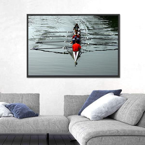 Celebrate the spirit of collaboration with this striking canvas art featuring a rowing team in action. The powerful imagery, with reflections and ripples in serene gray tones, evokes a sense of focus and motivation, making it a perfect addition to any sports enthusiast's décor.
