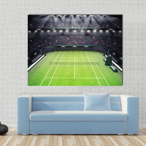 This vibrant canvas captures the thrilling energy of a tennis stadium under bright lights. With a detailed view of the court and a lively crowd, it brings a dynamic atmosphere to any space.