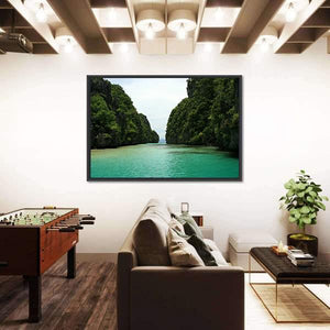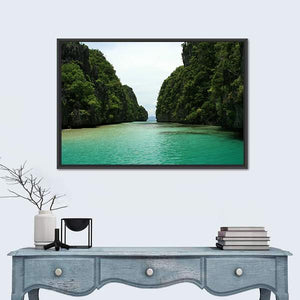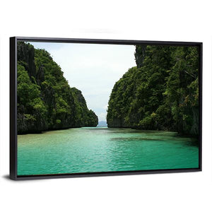 Capture the serene beauty of El Nido, Philippines with this stunning canvas wall art. Featuring tropical islands framed by rocky cliffs and lush green foliage, this piece brings the essence of a bright, natural landscape to your space. The calming turquoise waters and light sky evoke a peaceful atmosphere.