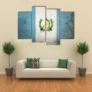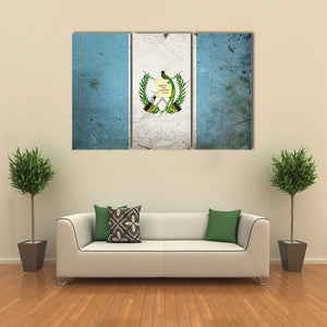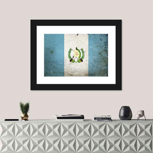The Flag of Guatemala Canvas Wall Art shows the Guatemalan flag with its coat of arms rendered in a vintage, patriotic style. Rendered in blue, white, green, and gold with a symmetrical composition, it suits modern house and room decor that lean toward historical or patriotic themes.