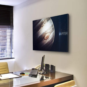 This captivating artwork features a close-up of Jupiter’s Great Red Spot, showcasing the mesmerizing swirling clouds of the planet. With a palette of browns, whites, oranges, blacks, and blues, it evokes a sense of vastness and mystery, perfect for adding a celestial touch to your decor.