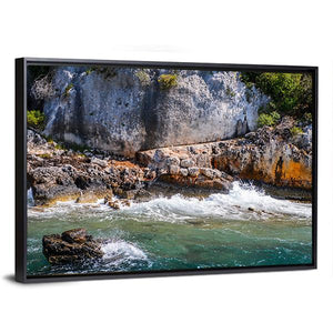This artwork captures the dynamic beauty of the ocean and cliffs at Kekova Island. With crashing waves and clear water, it showcases a vibrant palette of blue, green, and gray that brings a powerful natural vibe to any space.