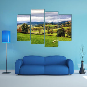 This landscape canvas features serene rolling hills, lush green fields, and grazing sheep under an overcast sky. Its natural and rustic vibe makes it a lovely addition to any home.