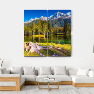Experience the serene beauty of Chamonix with this canvas wall art featuring majestic snow-capped mountains and a tranquil lake. The realistic landscape captures the essence of nature, evoking a peaceful mood perfect for any space.