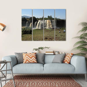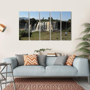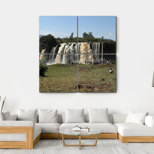 Experience the beauty of The Nile Waterfall with this stunning canvas print. Featuring multiple cascading falls surrounded by lush greenery and distant mountains, this artwork captures a peaceful and scenic atmosphere. It's a perfect addition to any nature lover's décor.