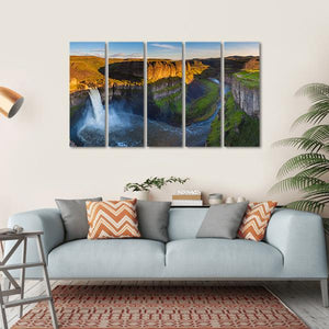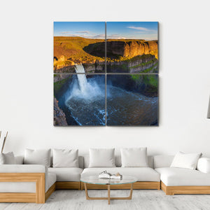 Experience the beauty of nature with our canvas wall art featuring the stunning Palouse Falls in Washington. This artwork captures the majestic waterfall surrounded by cliffs and lush greenery, creating a serene atmosphere perfect for any space.