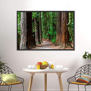 Experience the tranquility of towering redwoods in this stunning canvas artwork. Featuring a serene forest path, sunlight filtering through the lush canopy, and detailed bark textures, this piece brings a peaceful, natural vibe to any space.