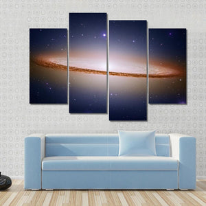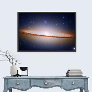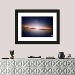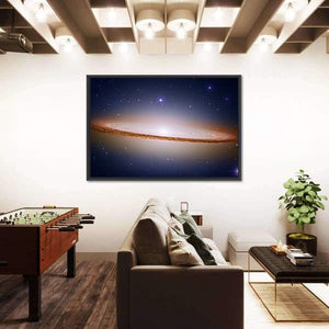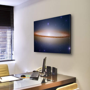 Experience the awe-inspiring beauty of the Sombrero Galaxy with this modern canvas wall art. Its deep blues and vibrant oranges create a mysterious, vast atmosphere, making it a stunning focal point for any space.