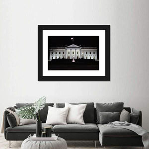 This canvas art captures the iconic White House at night, showing its illuminated windows and impressive columns. The formal and stately mood reflects a sense of American pride, making it a compelling addition to any wall decor.