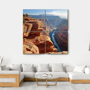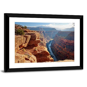 Experience the vast and serene beauty of Toroweap Point with this captivating canvas wall art. The stunning landscape features majestic cliffs and a winding river, bathed in warm sunlight. Ideal for those looking to bring a touch of nature indoors.