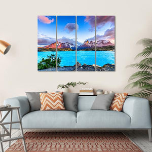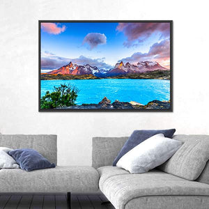 Experience the serene beauty of Patagonia with this stunning canvas wall art. Featuring snow-capped mountains and a vibrant blue lake under dramatic sunset clouds, this piece captures the majestic landscape perfect for any nature lover's decor.