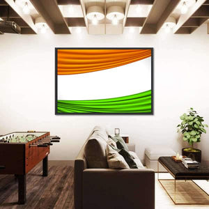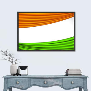 This abstract canvas art features the iconic colors of the Indian flag—orange, white, and green—presented in a minimalist style. The flowing fabric texture contributes to a patriotic and simple aesthetic, making it a striking addition to any decor.