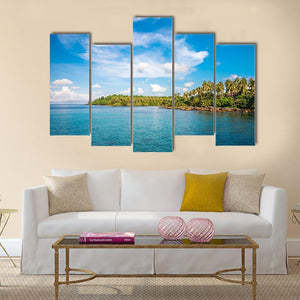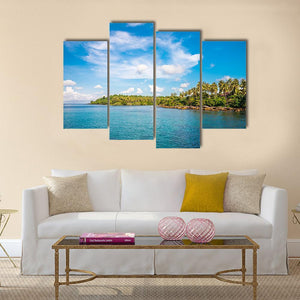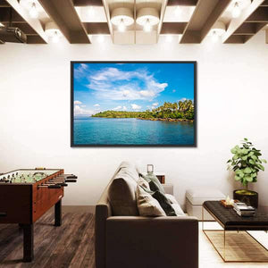 Featuring Koh Kood’s tropical shoreline, this photorealistic canvas shows clear turquoise water, fluffy white clouds, dense green foliage, and palm trees. The rule-of-thirds composition creates a serene, vibrant tropical atmosphere. A calm, nature-inspired choice for coastal or modern room decor.