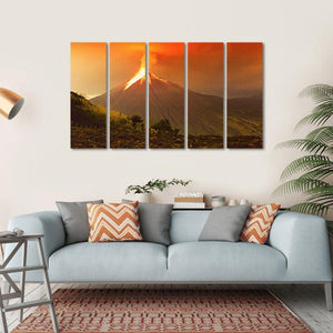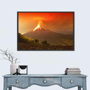 Experience the raw power of the Tungurahua Volcano with this stunning canvas art. The piece captures glowing lava erupting from the peak, surrounded by billowing smoke against a fiery sky, invoking a dramatic and awe-inspiring atmosphere.
