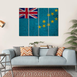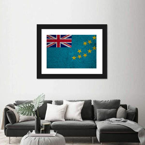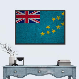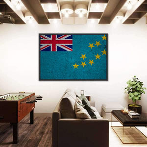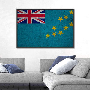 Celebrate your love for Tuvalu with this vibrant flag canvas wall art. Featuring a striking blue background adorned with yellow stars and the Union Jack, it adds a patriotic touch to any space. Its vintage and textured style makes it a meaningful addition to your decor.