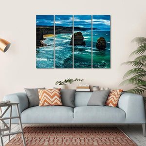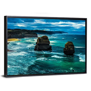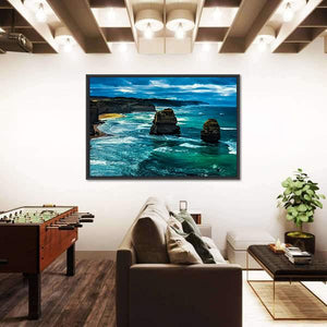 This canvas art captures the dramatic beauty of the Twelve Apostles along the Great Ocean Road in Australia. With choppy turquoise waves and imposing rock formations under dark clouds, it evokes a powerful, natural atmosphere that brings the ocean's energy into your space.