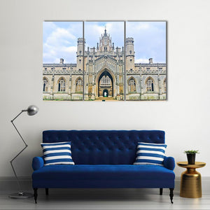 This canvas captures the grandeur of the Gothic architecture at the University of Cambridge, featuring intricate stonework and pointed arches under a serene blue sky. Its traditional style and symmetrical composition make it a striking focal point for any space.